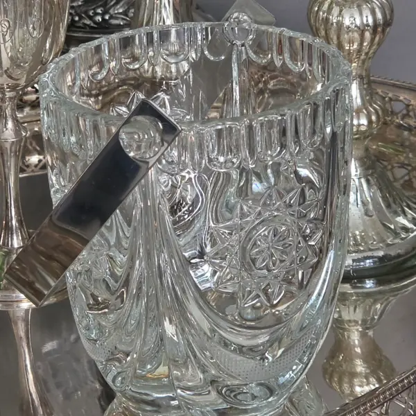 Vintage Glass Ice Bucket with Tongs