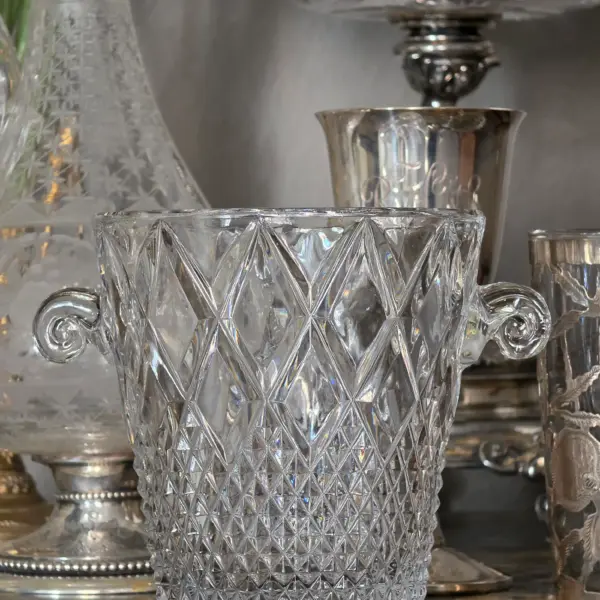 Vintage Glass Ice Bucket with Scroll Handles