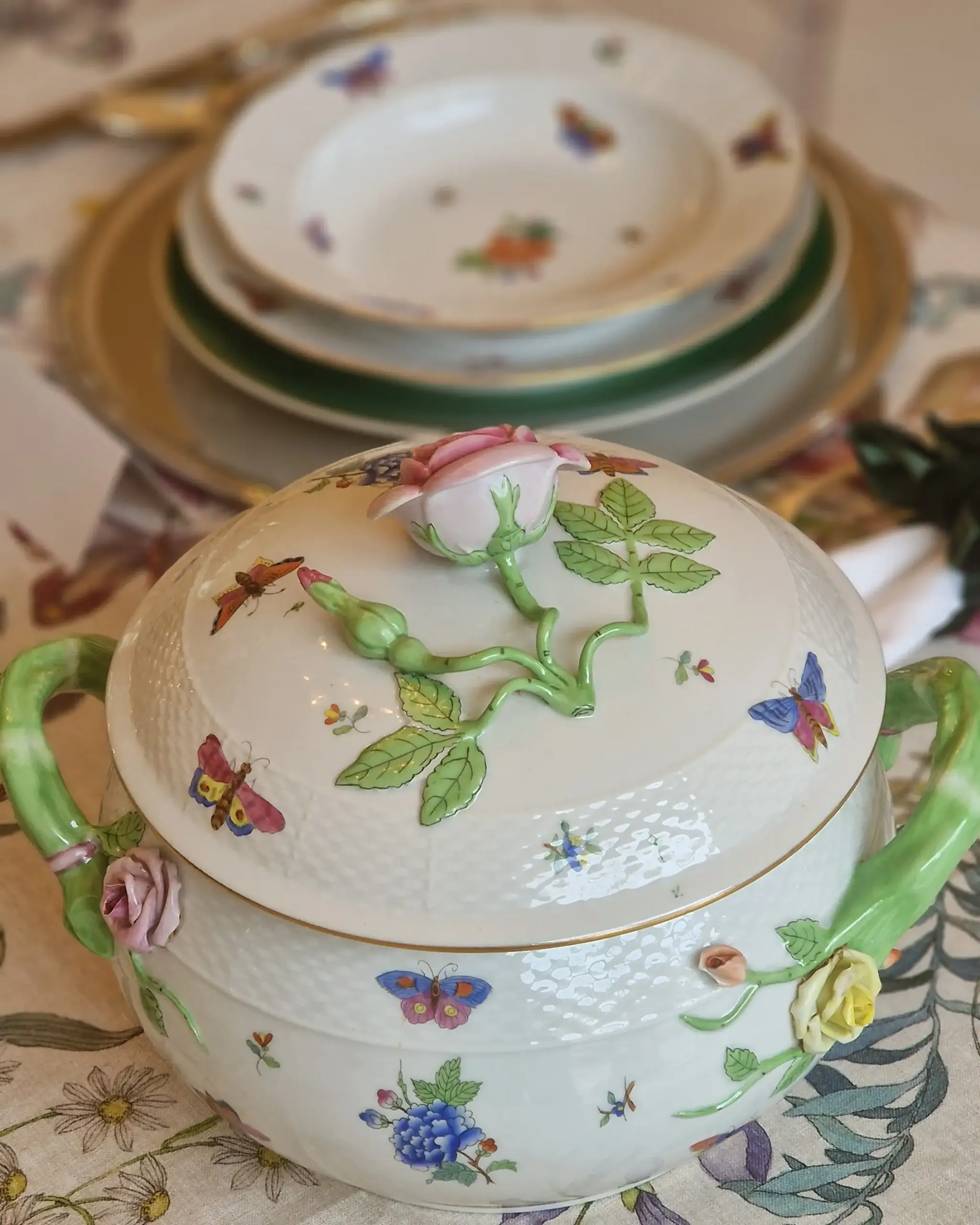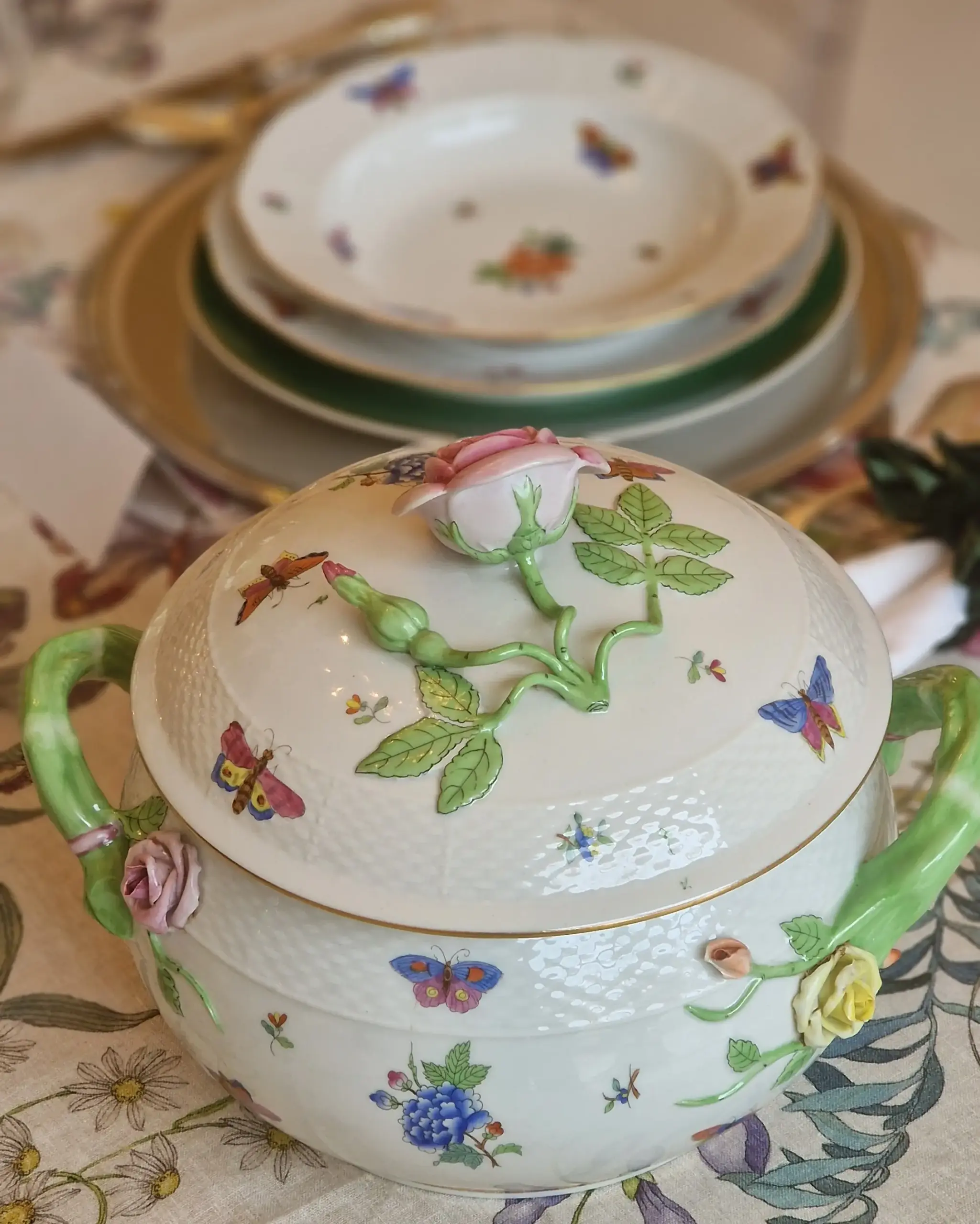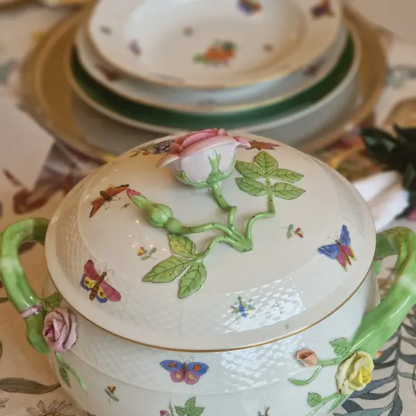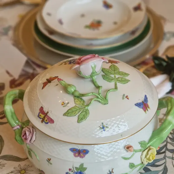 his exquisite Herend service, in the beloved Queen Victoria pattern, belongs to the latter — where every detail feels like a whisper of a garden in full bloom.