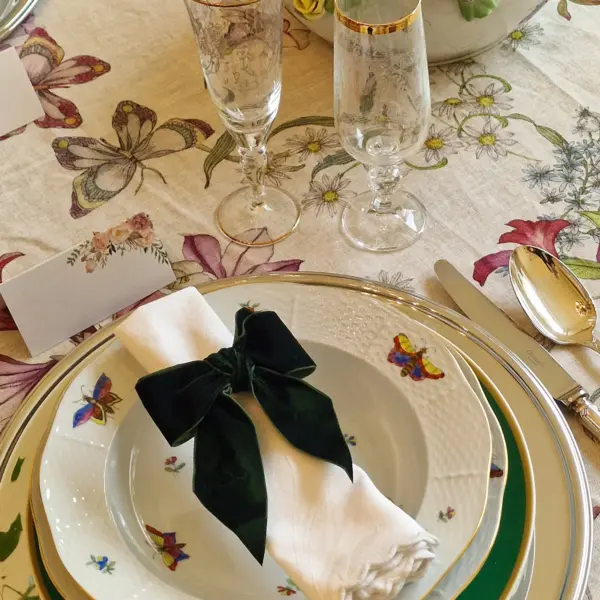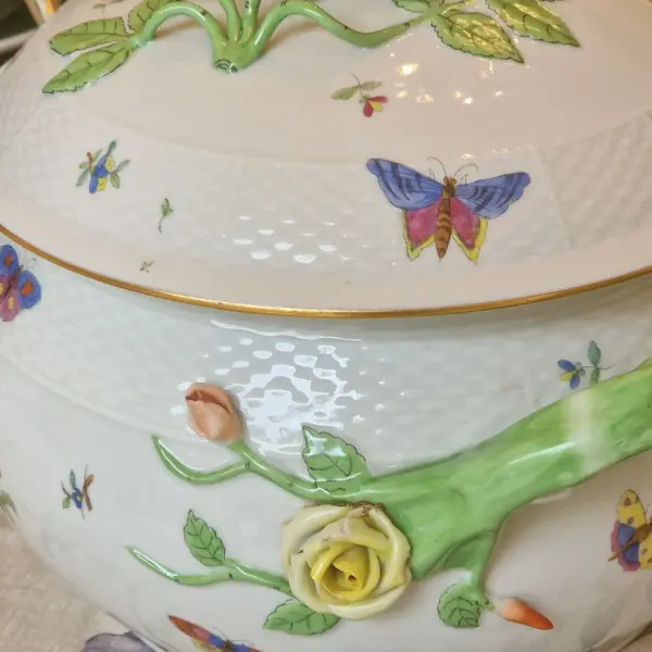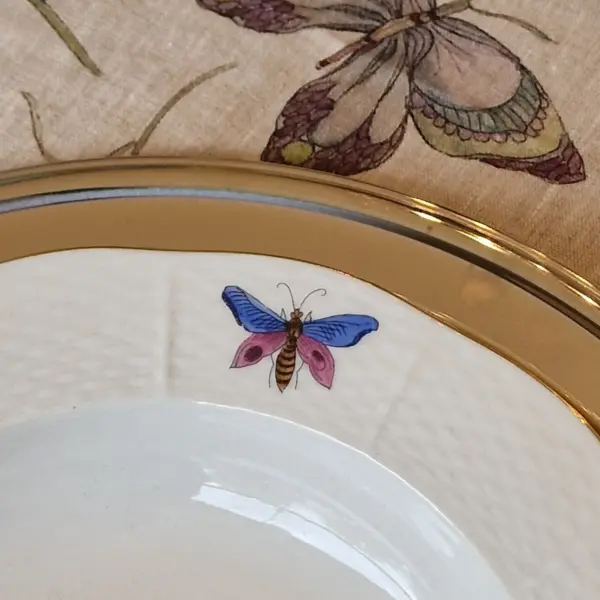 Handcrafted in Hungary, this iconic pattern was first created for Queen Victoria herself in the 19th century, and it continues to embody the romance of fine European porcelain. Delicate butterflies drift across the surface, settling gently among hand-painted peonies and florals, each brushstroke a testament to Herend’s extraordinary artistry.